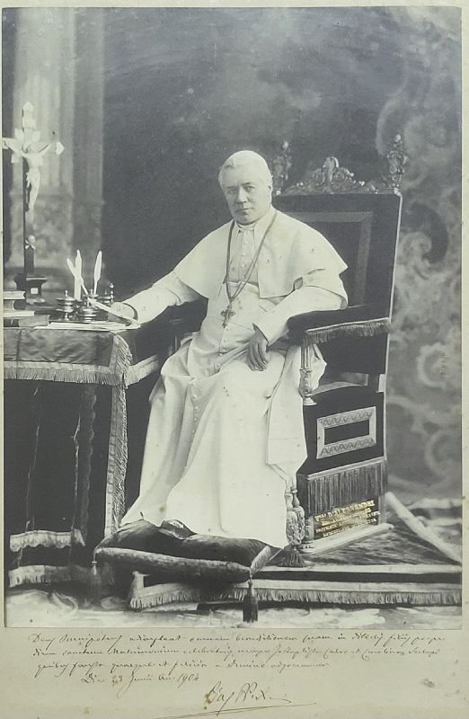 Pio X, Papa, fotografia autografata (testo in latino) 1904 cm.53x70
