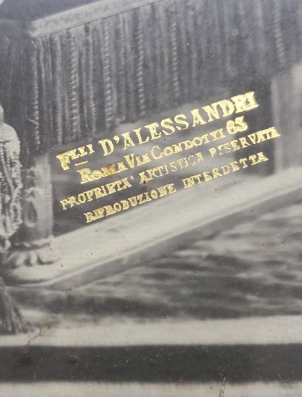 Dedica e firma scritte di pugno ad inchiostro nero. La foto ufficiale timbrata da F.LLI D'ALESSANDRI - Roma Via Condotti, montata su cartoncino ed in cornice coeva.
