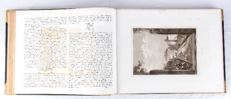 Due volumi in in oblungo , cm.39x30, copertina rigida legatura coeva, carta marmorizzata blu, dorso ed angoli in finto cuoio impresso in oro. Collazionate 187 incisioni di eccezionale fattura e bellezza, testimonianza "fotografica" del passato.