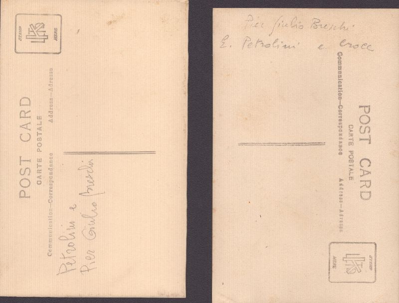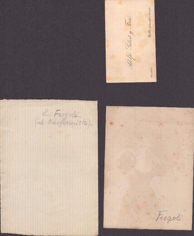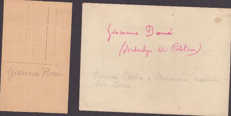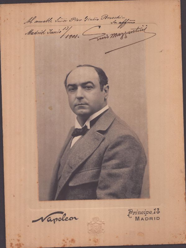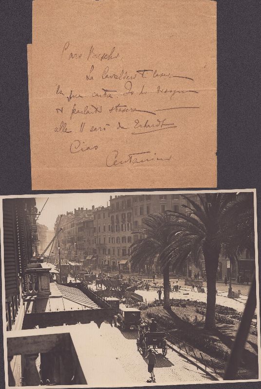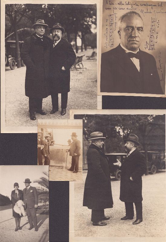 tre (3) foto di Barrili con Stefano Canzio in raduno insieme ad altri ex-garibaldini; una lettera con dedica autografe di Giacomo Boni (direttore degli scavi del Palatino); foto con dedica e firma autografe di Luis Mazzantini (1901); cartolina fotografica con dedica e firma autografe di Nicola Maldacea; quattro (4) fotografie di Breschi insieme al baritono Titta Ruffo Cafiero; dieci (10) foto con Breschi e familiari insieme a Ruggero Leoncavallo ed Umberto Giordano; una foto con rigo musicale e dedica autografate da Umberto Giordano; due (2) foto ritratto di diverse epoche di Umberto Giordano con dedica e firme autografe; foto con dedica e firma di E.Piaggio (1899); lotto misto di foto di famiglia Barrili/Breschi insieme a Petrolini , Croce, cartoline con personaggi (Lina Cavalieri); sei (6) foto di Breschi con Leopoldo Fregoli, Petrolini, Croce, Titta Ruffo (una con autografi di Fregoli e Titta Ruffo)