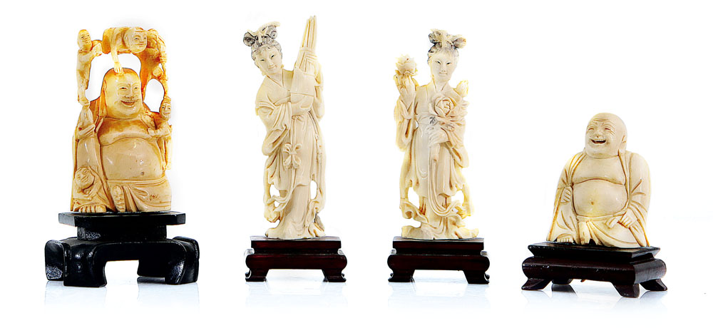 AVORIO QUATTRO SCULTURE IN AVORIO, CINA, XX SECOLO, raffiguranti due Buddha e...