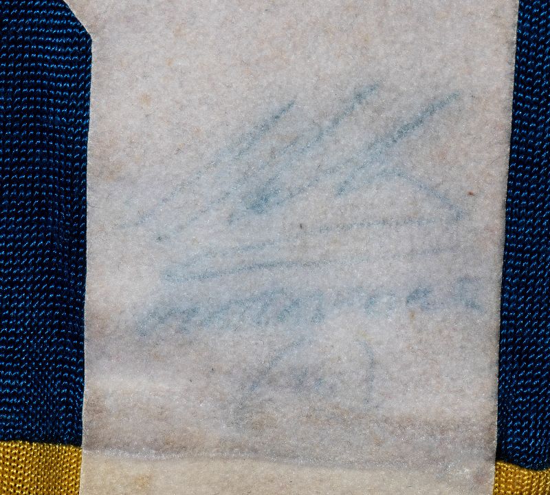 La dedica e la firma autografe scritte di pugno da Maradona sul numero "10", sono scolorite per via del tempo ed anche per l'assorbimento dell'inchiostro dal flock del numero stesso. La dedica scritta nella parte alta del numero "0" sembra recitare "A Carlos Arana con todo cariño- Diego Maradona 10"  e poi nella parte centrale del numero troviamo la consueta firma di Diego Maradona