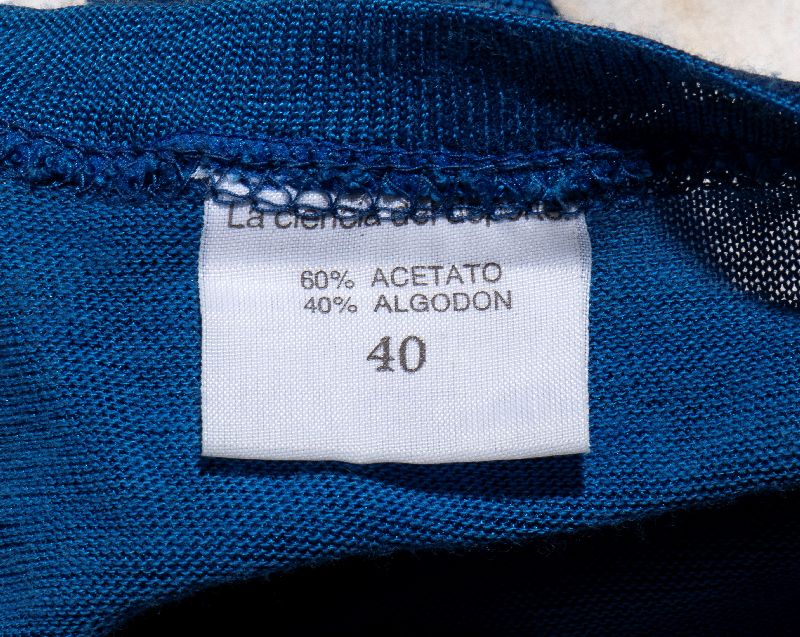 Etichetta interna con indicazioni del materiale  "LA CENCIA DEL DEPORTE  60% ACETATO 40% ALGODON"
