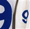 Sul fronte: logo NR a ricamo applicato, numero 9 cucito, logo circolare COSMOS ricamo applicato