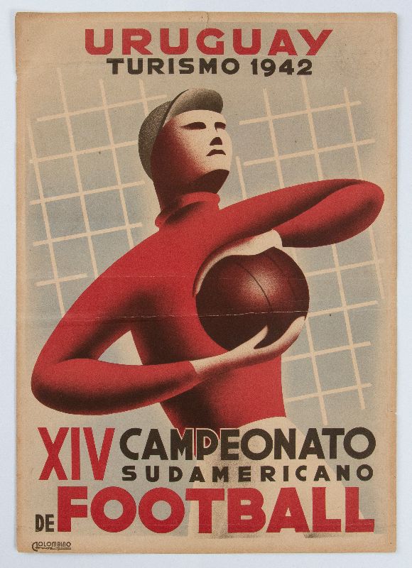 Manifestino locandina litografica su carta, edito in occasione del XIV CAMPEONATO SUDAMERICANO DE FOOTBALL - URUGUAY TURISMO 1942