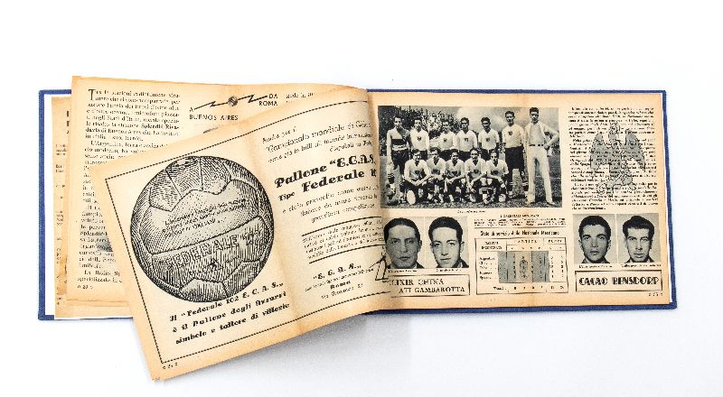 Pubblicazione originale d'epoca, con belle illustrazioni, con presentazioni dettagliate di tutte le squadre, degli arbitri e degli stadi. Dettagli sui premi (medaglie, distintivi, Coppa del Duce) , presenti tutte le 64 pagine compresa quella con l'immagine di Mussolini "SALUTO AL DUCE PRIMO SPORTIVO D'ITALIA" . Con il tabellone delle gare del girone finale, grafica ideata da Ottorino Mancioli, quarta di copertina a colori con un calciatore al tiro disegnato da Gino Boccasile.