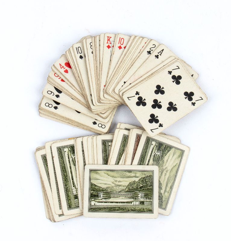 - 2 mazzi di carte da poker, rosso e nero, con il dorso recante la stampa dello stadio del ghiaccio di Cortina
