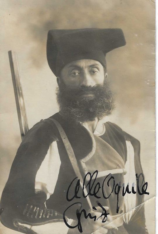 Foto b/n autografata originale di Guido Keller in costume sardo (?) con dedica ALLE AQUILE - GUIDO