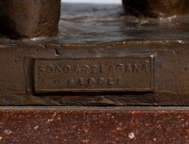 Figura montata su base in marmo, altezza circa cm. 51 della sola statua, cm.61 in totale con la base. In perfette condizioni, con bella patina del tempo.