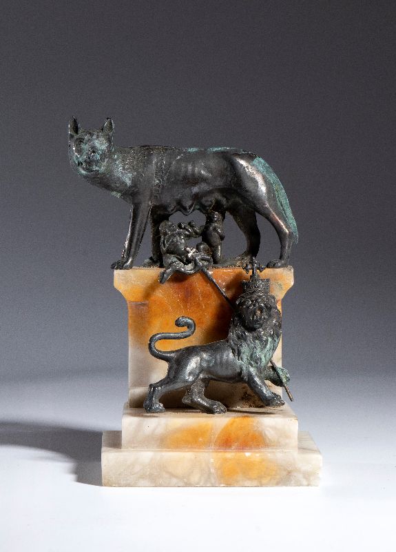 Lupa di Roma sovrastante il Leone di Giuda.
