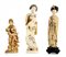 TRE SCULTURE IN AVORIO, CINA, XX SECOLO, raffiguranti una geisha, una figura femminile su base in legno e una maternità; mancanza e sbeccature.