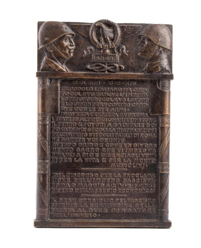 Mussoliniana, ventennio, Piastra dell'Impero 1936 bronzo cm.20x30