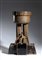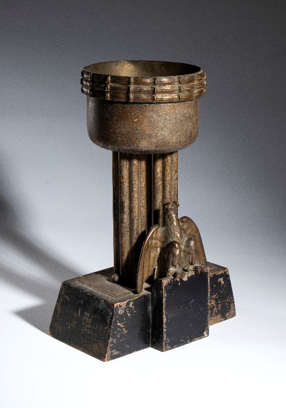 Trofeo in bronzo, in lamiera d'ottone, base in legno, con aquila imperiale ad ali aperte (in bronzo pieno) situata alla base del trofeo.