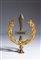 Fusione originale in lega d'alluminio o bronzo, argentato (gladio romano) e dorato (serti di quercia ed alloro)