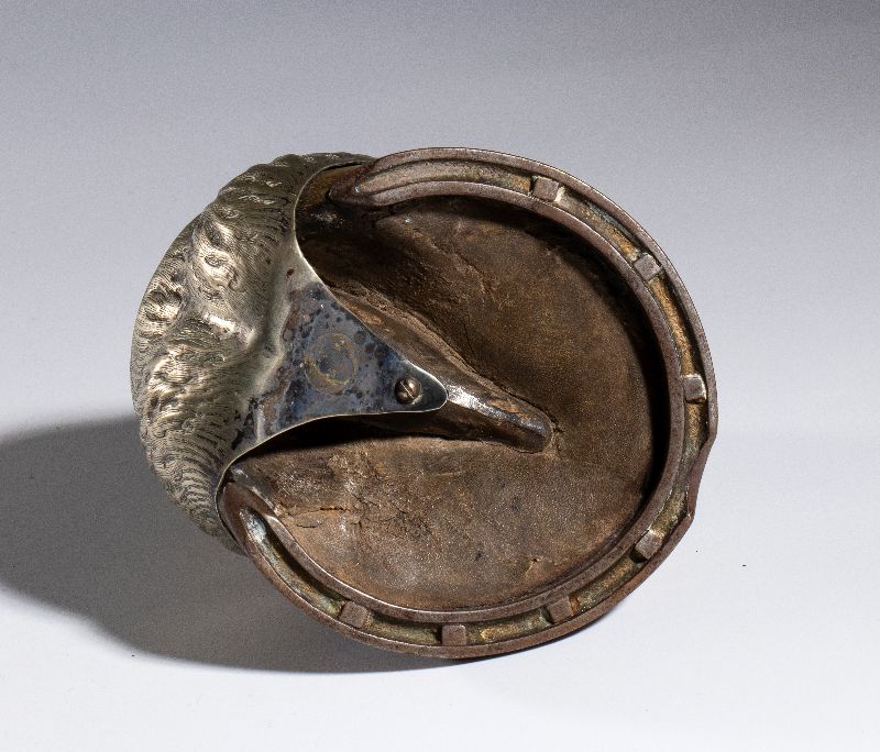 Calamaio realizzato con uno zoccolo di cavallo, e struttura in metallo, coperchio ad apertura per accedere al vano porta inchiostro. Metà '800, in ottime condizioni
