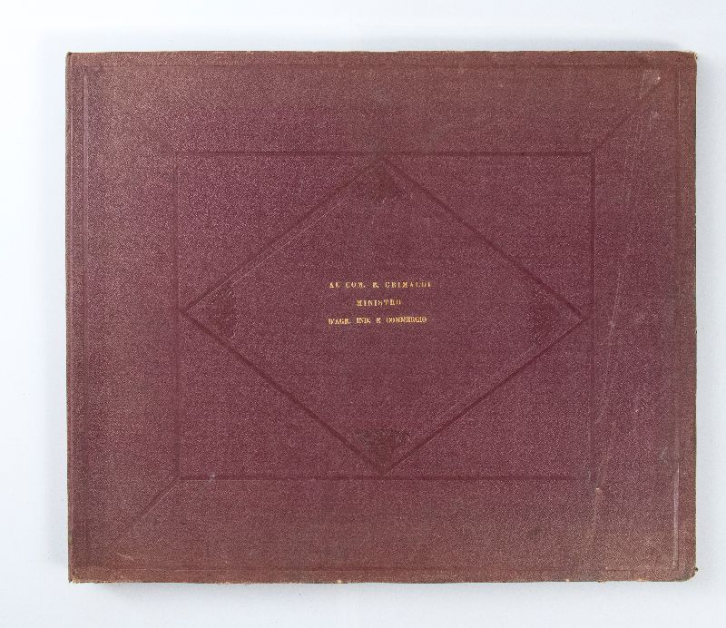 L'album con copertina in similpelle, reca la dedica in copertina impressa in similoro "AL COMM. B.GRIMALDI - Ministro Agr. Ind. e Commercio"