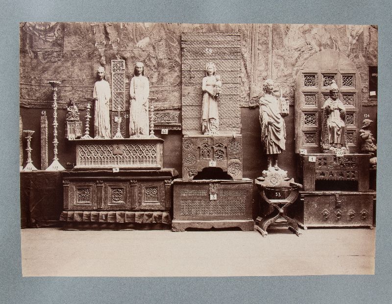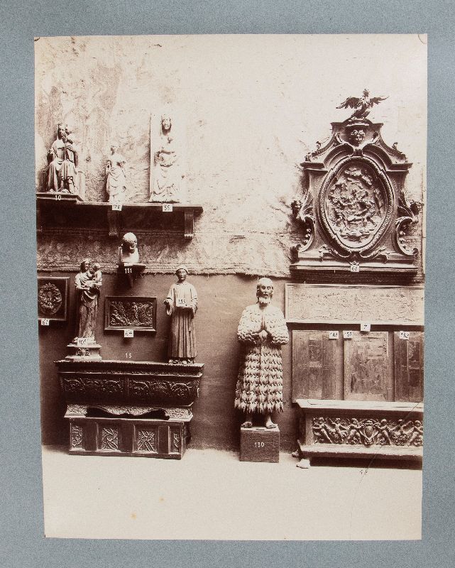 Album con raccolta di 20 fotografie all'albumina applicate su cartoncino, raffiguranti reperti archeologici, museali, statue, sculture, mobili, con numeri per probabile didascalie descrittive del materiale conservato in un qualche museo (Uffizi, Musei Vaticani)