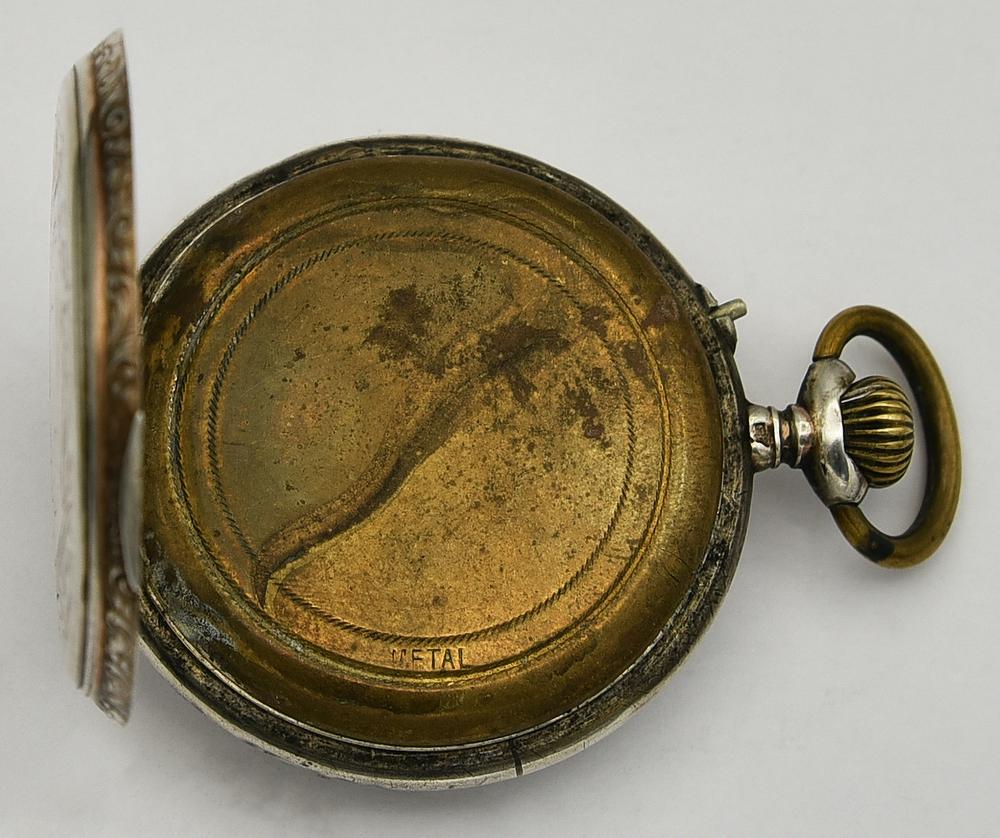 Orologio da tasca in metallo con tracce di doratura, primi 900