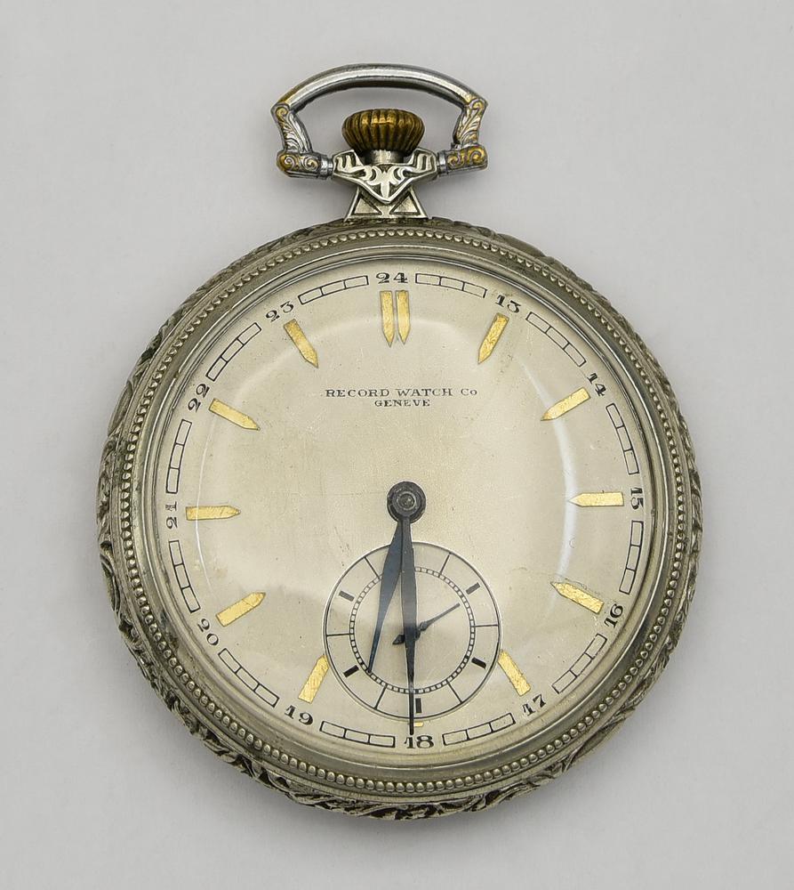 Orologio da tasca in metallo Record Watch Co. Geneve, primi 900