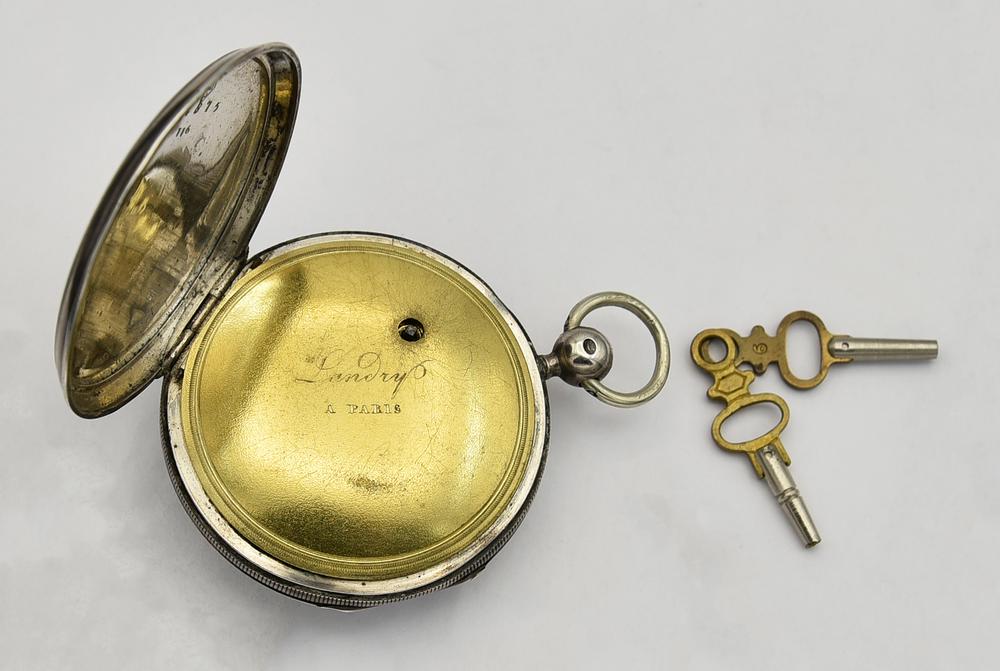 Orologio da tasca Landry a Paris, anni 20-30 del 1800, argento, con chiave