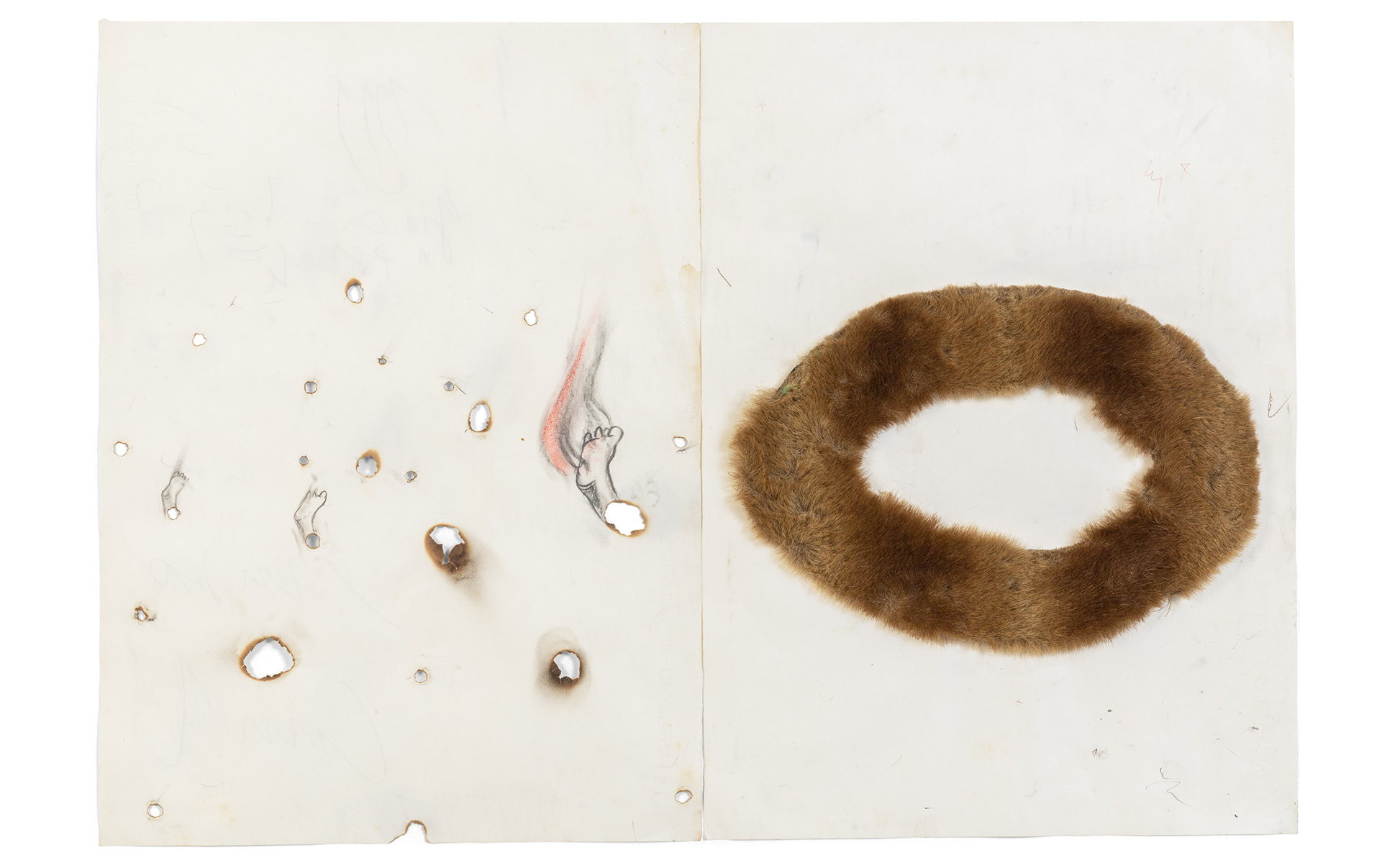 tecnica mista e collo di pelliccia su carta cm 48x70