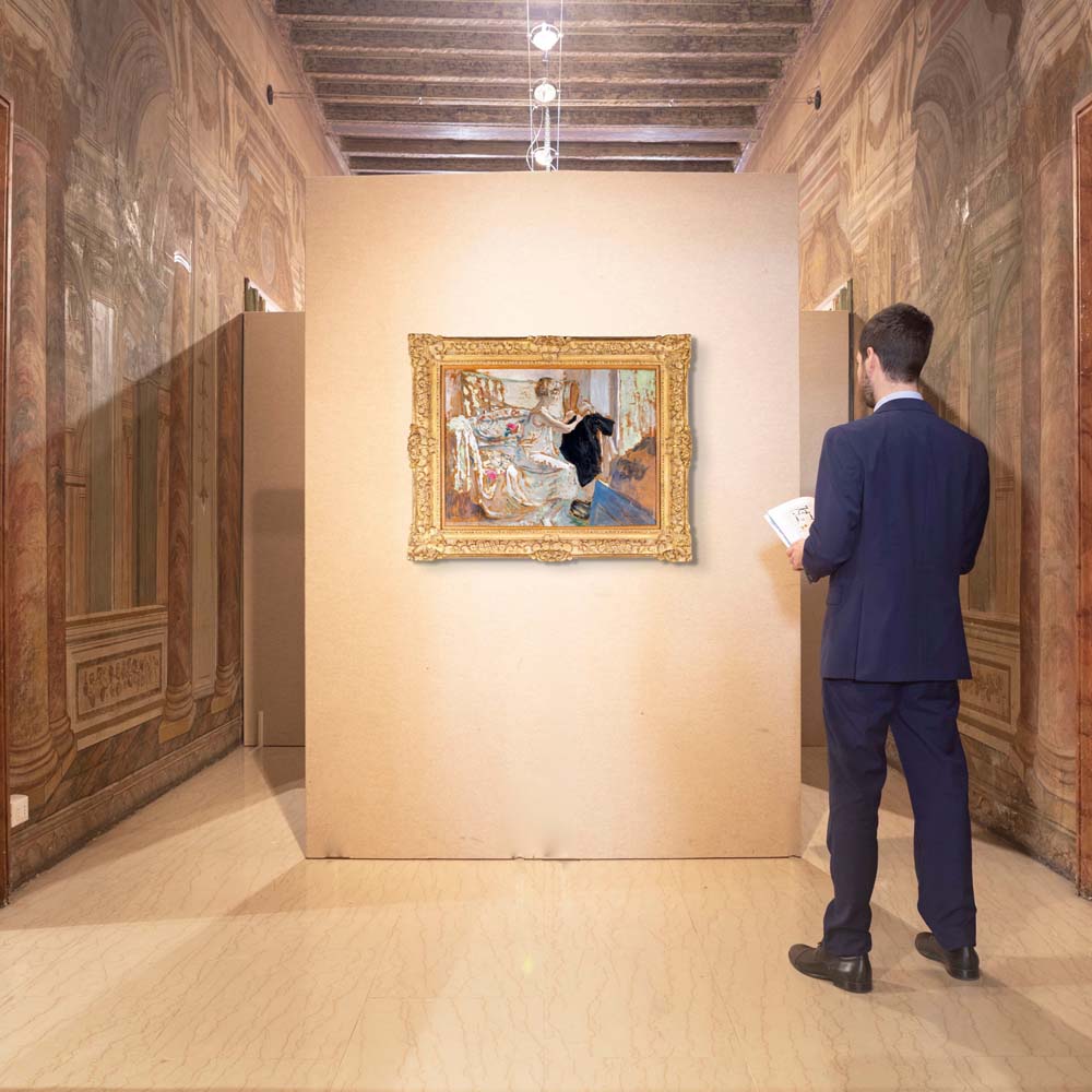 olio su cartone riportato su tavola parchettata cm 59,5 x 80 - in cornice cm 83 x 103,5 1903 circa A. Salomon e G. Cogeval, Vuillard / The Inexhaustible Glance / Critical Catalogue of Paintings and Pastels / Volume II, Milano, 2003, p. 651, n. VII - 215 (ill.). Si allega dichiarazione di autenticità su fotografia di Robert Schmit n. 1810, in data Parigi, 7 Ottobre 1986. Collezione Roger Marx, Parigi;