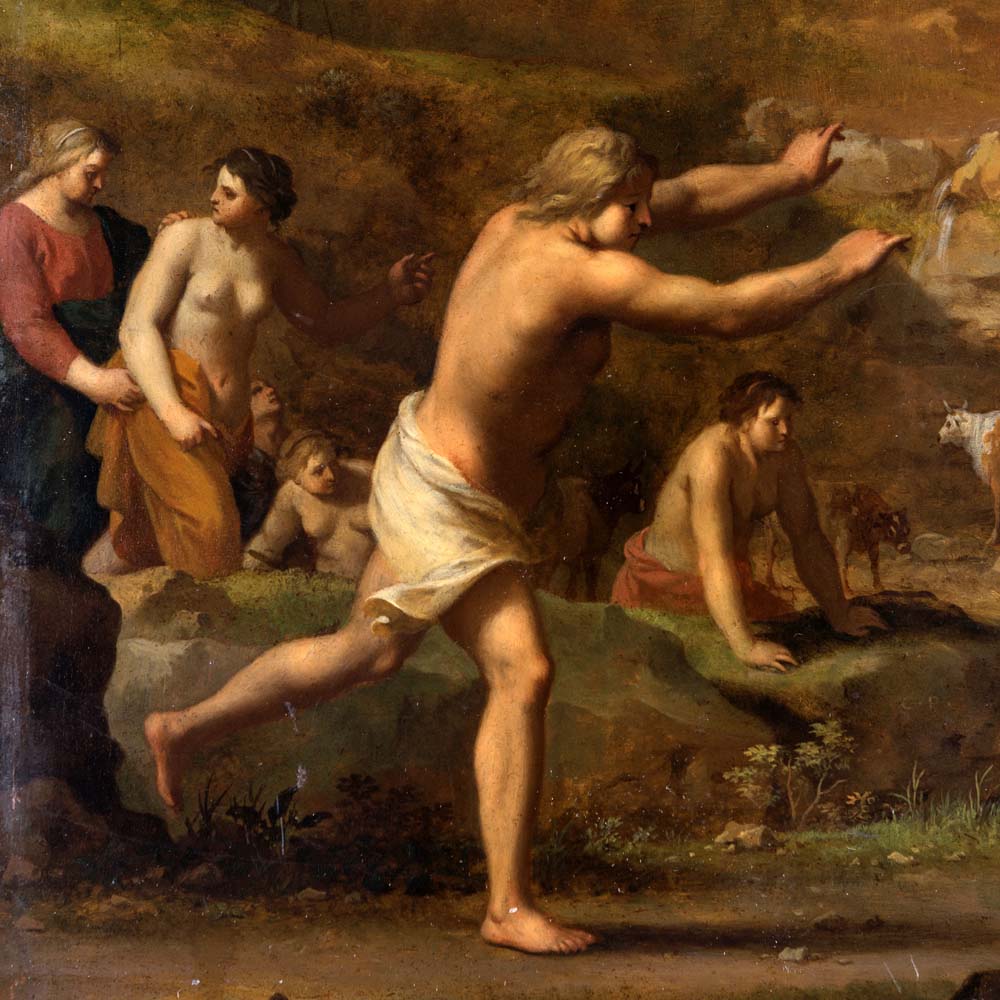 Atalanta e Ippomene firmato sul retro Cornelius Poelenburg