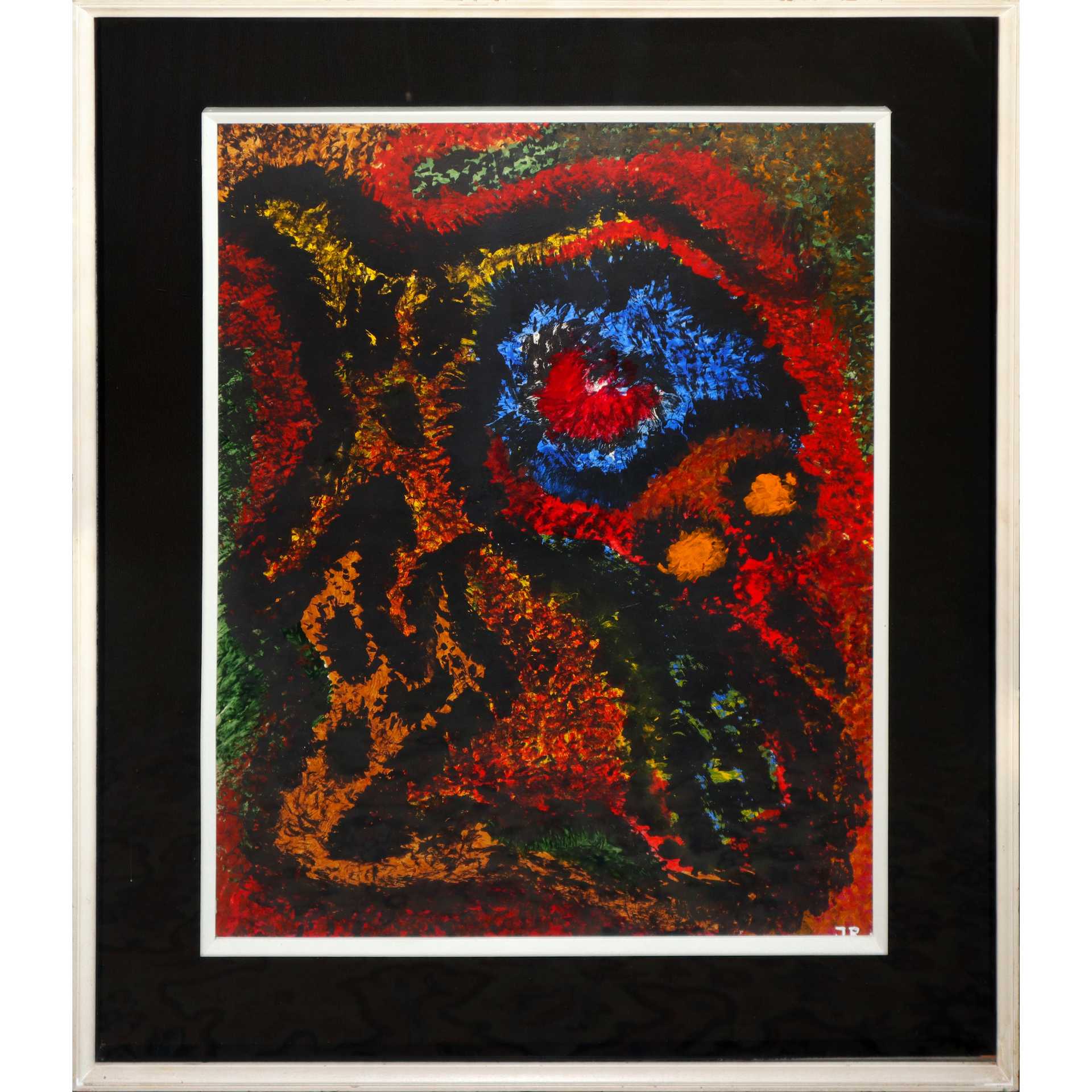 John Brad Movimento CO.BR.A. (1948 - 1951) - Astratto h cm 62X47 in cornice h cm 81X77 olio su cartone Firmato in basso a destra