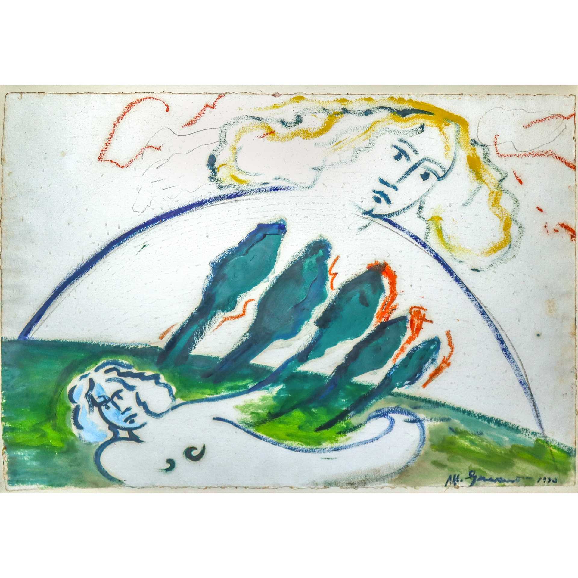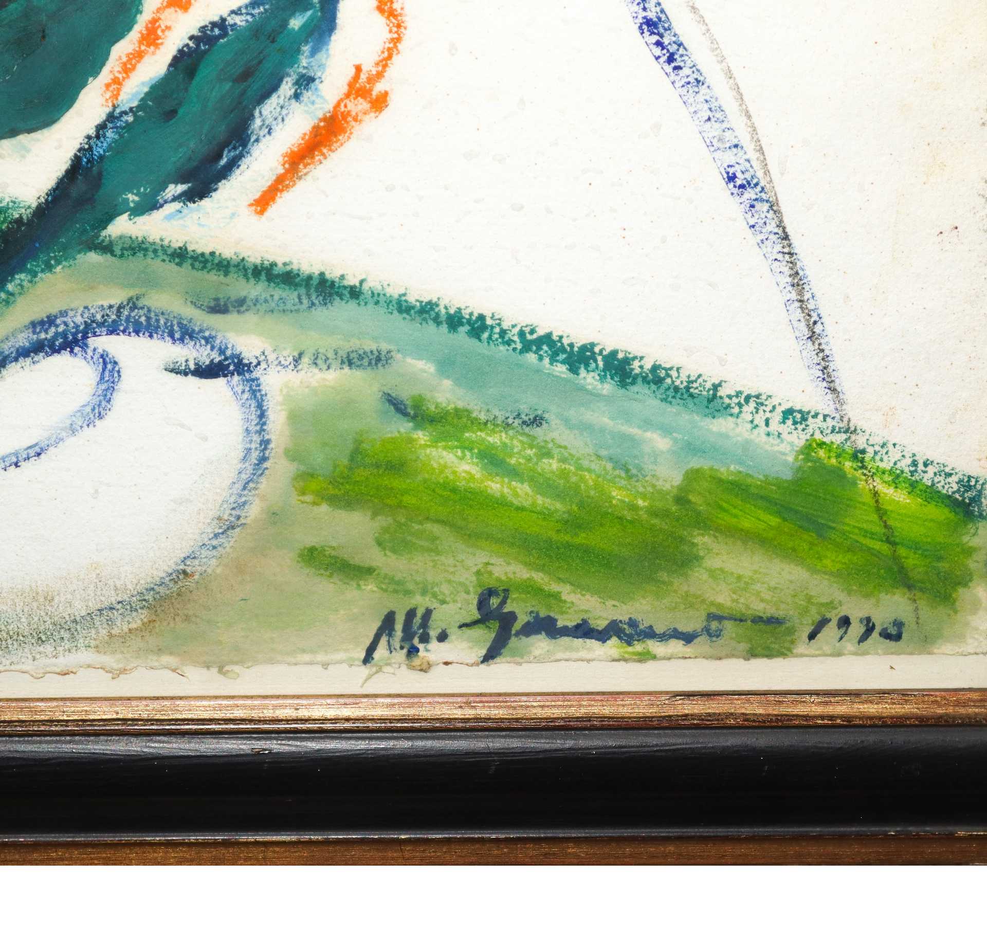 Mimmo Germanà (1944 - 1992) - Senza Titolo, 1990 h cm 57X78 in cornice h cm 67X92 tecnica mista su carta spugnata applicata a faesite Firmato e titolato in basso a destra