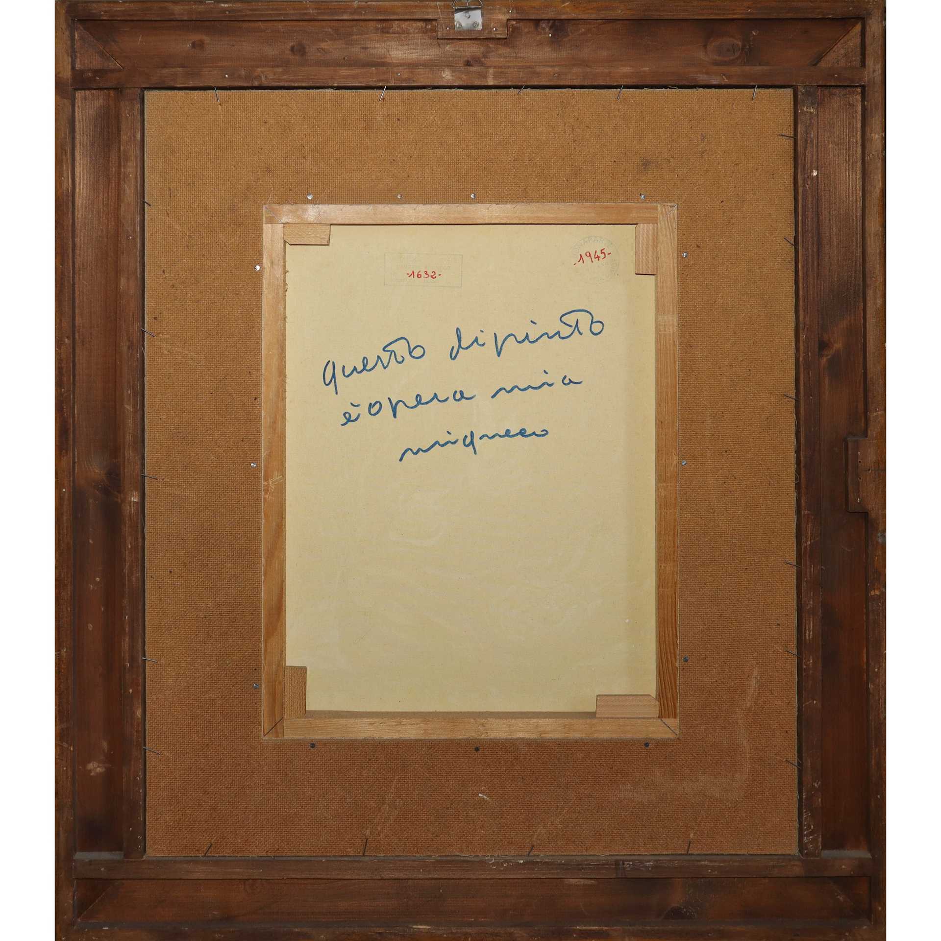 Giuseppe Migneco (Messina 1903 - Milano 1997) - Raccoglitrice di limoni, 1980s h cm 45X35 in cornice h cm 74X64 Olio su tela Firmato in basso a sinistra e sul retro firmato e autenticato dall'artista.