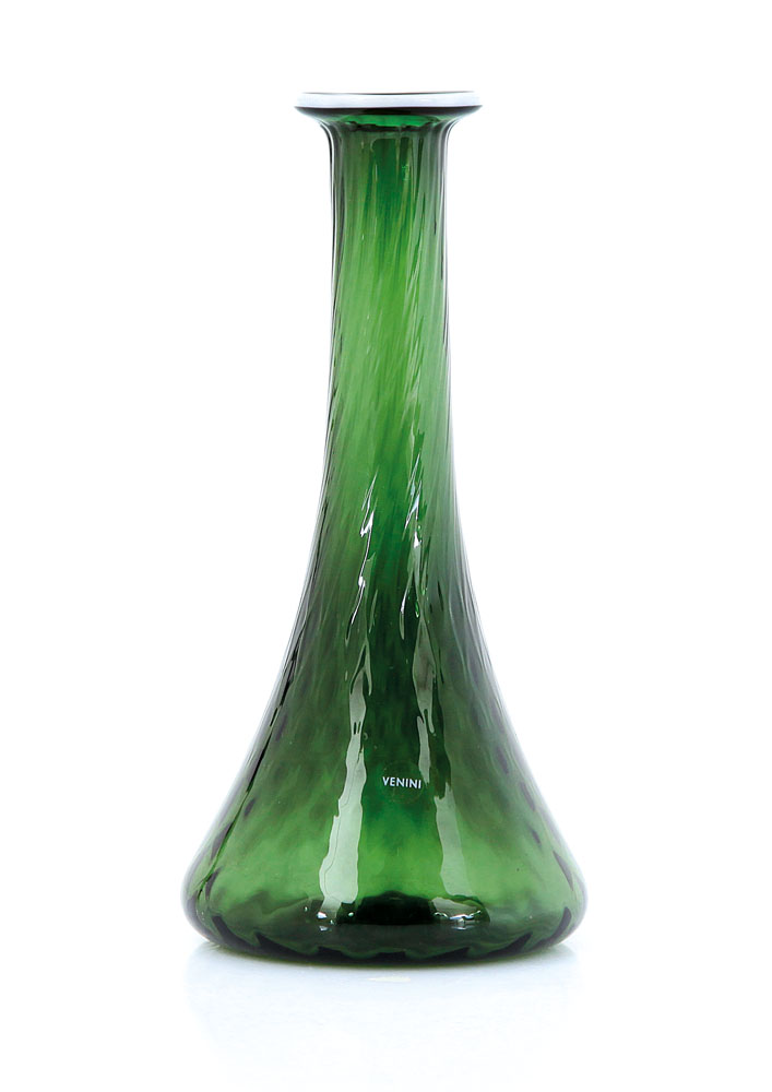 VASO "BALLOTON" IN VETRO, VENINI, 2007, verde con bordo bianco al collo, firma alla punta "venini 2007 per BMW Italia".