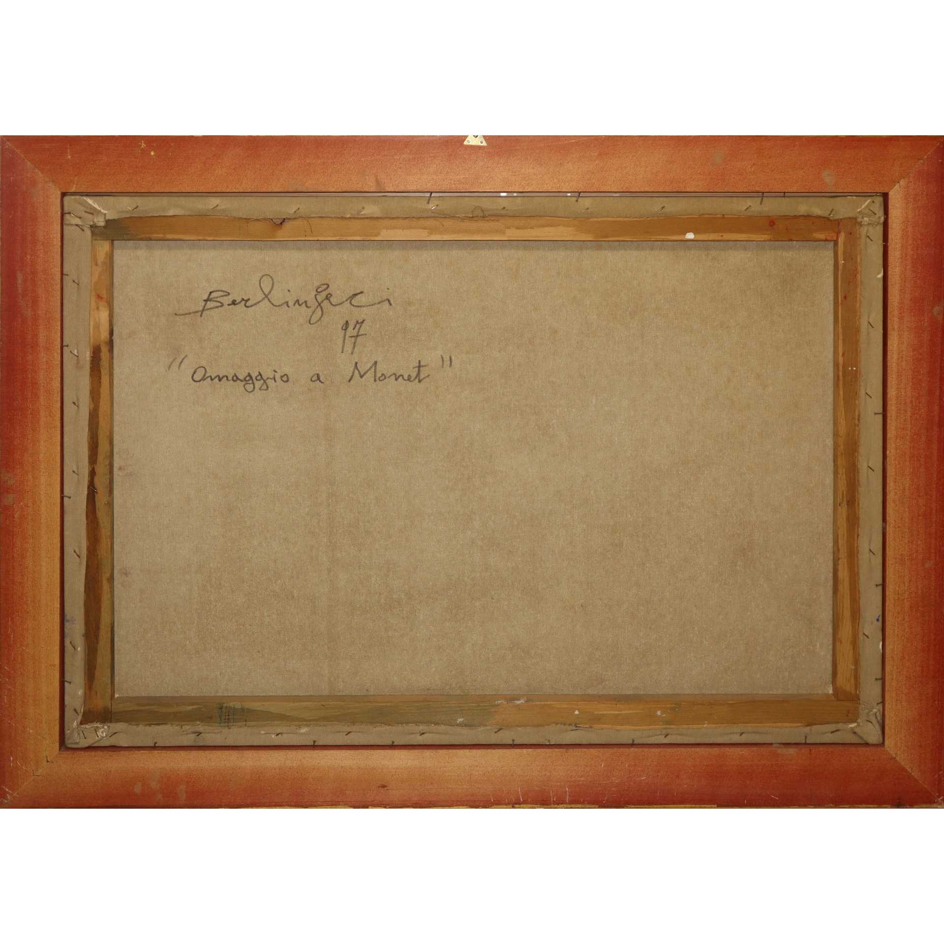 Cesare Berlingeri (Cittanova 1948 - 2014) - Omaggio a Monet, 1997 cm 70X100 in cornice cm 86,5x116 olio su tela Firmato, datato e titolato al retro. Autentica dell'artista su fotografia.