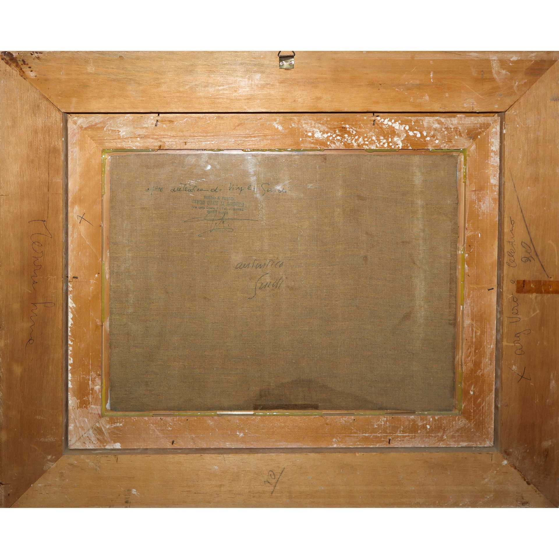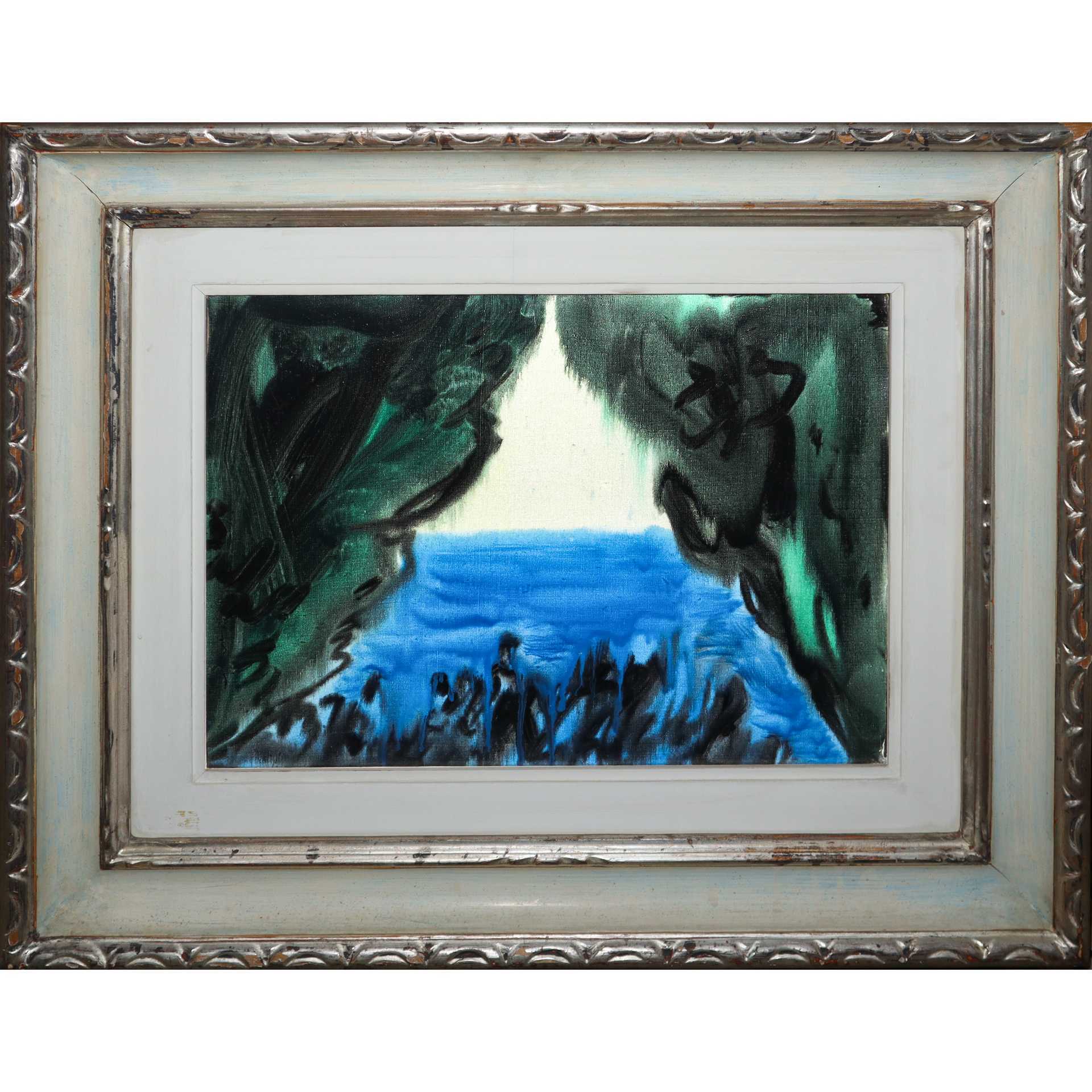 Virgilio Guidi (Roma 1891 - Venezia 1984) - Marina, 1963 h cm 30X40 in cornice h cm 53X63 olio su tela Firmato, datato, autenticato e titolato al retro.