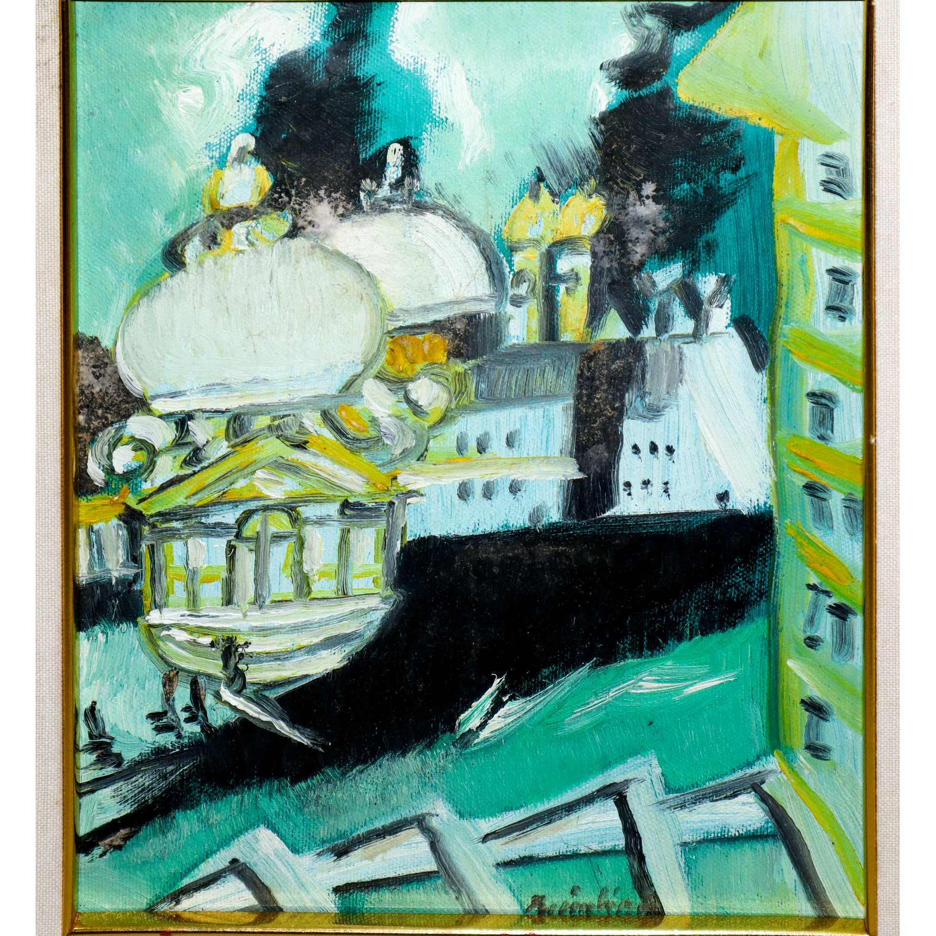 Remo Brindisi (Roma 1918 - Lido di Spina 1996) - Venezia h cm 30X24 in cornice h cm 53X47 olio su tela Autenticato dall'artista sul retro. Firmato al centro in basso