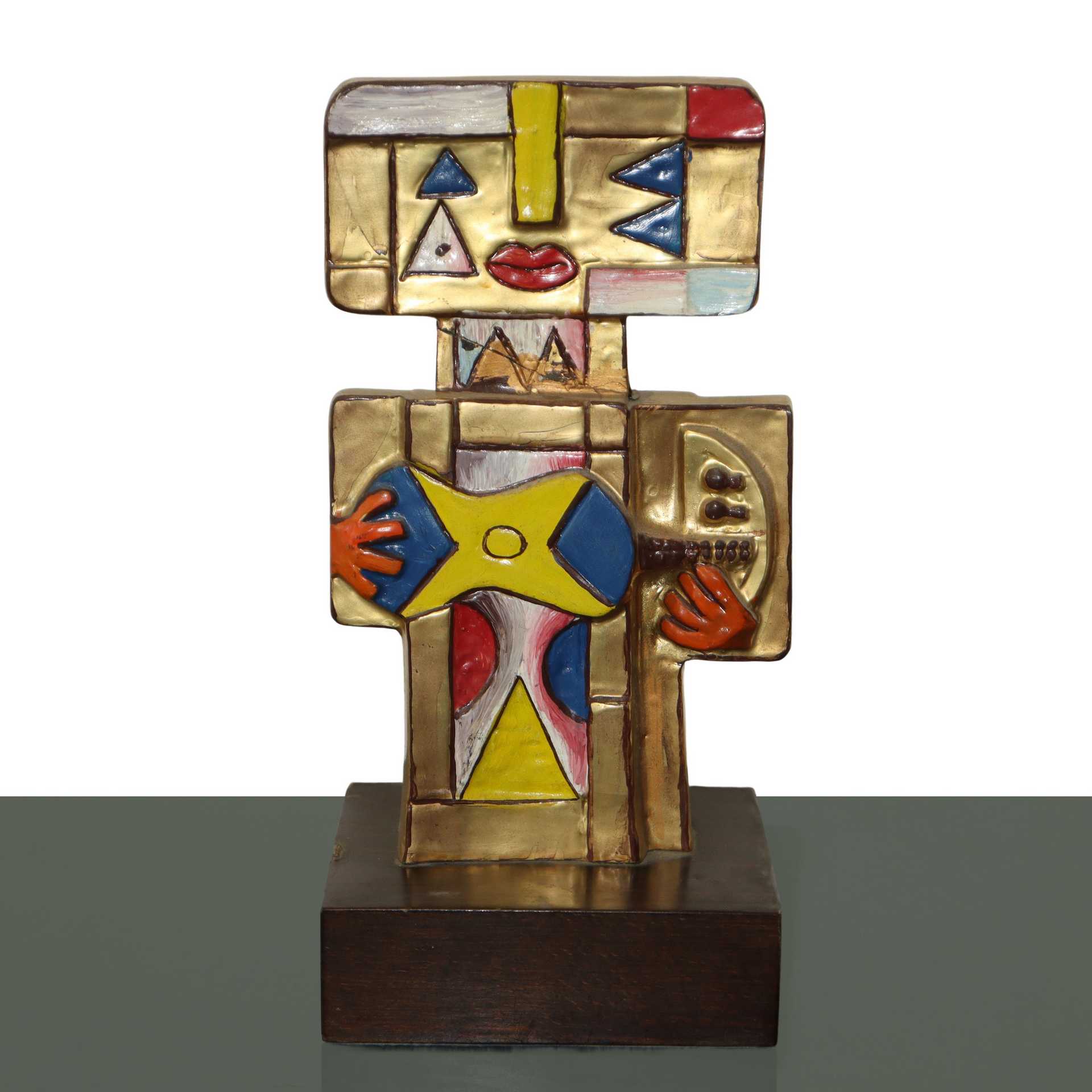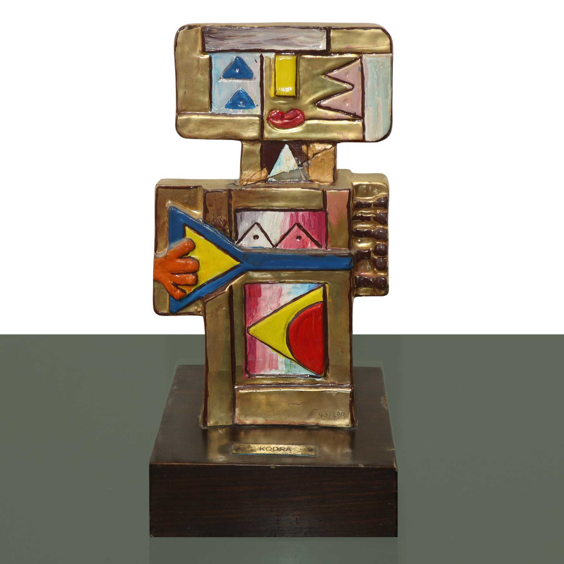 Ibrahim Shaban Likmetaj Kodra (Ishëm 1918 - Milano 2006) - I musicanti h cm 30 base cm 15X13 scultura double face in resina placcata in  oro e smalti. Firmata sul lato sinistro. Certificazione di autenticità esemplare n° 43/499. (presente incollatura)