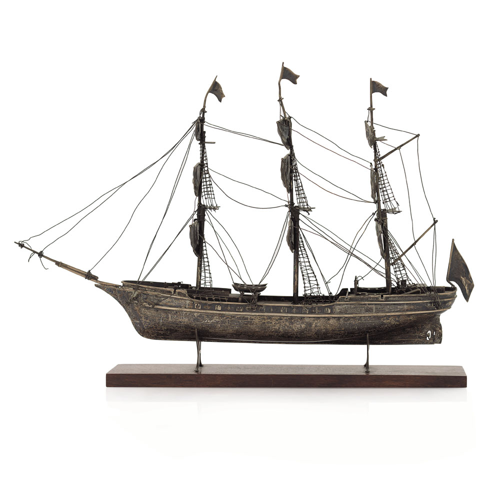 ARGENTI RECENTI MODELLO DI VELIERO IN ARGENTO, XX SECOLO, a tre alberi, base...