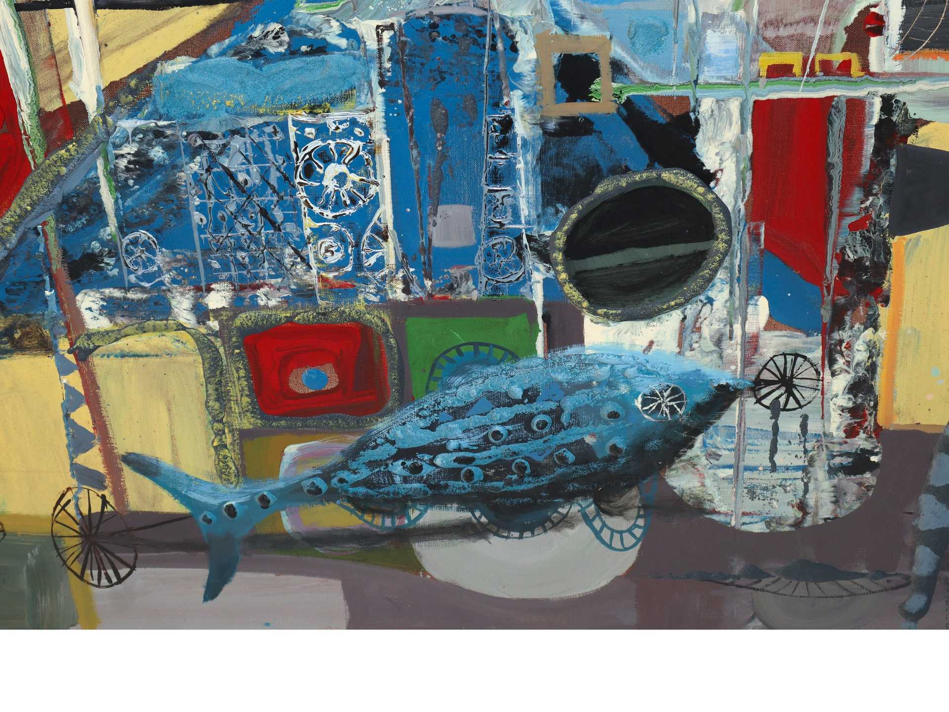 Jean Calogero (Catania 1922 - Acicastello 2001) - Il pesce blu cm 73x92 Tecnica mista su tela Firmato in basso a destra