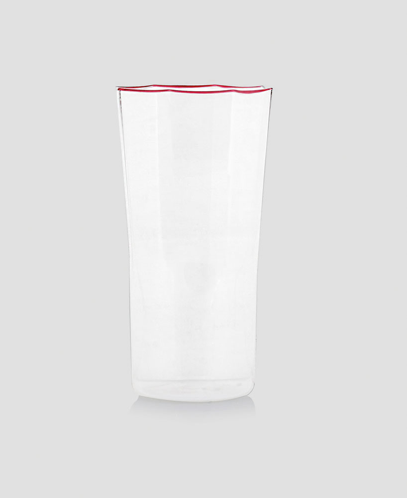 VASO IN CRISTALLO, VENINI, 1950 CA., collo ottagonale bordato di rosso; tracce di firma ad acido "venini murano".