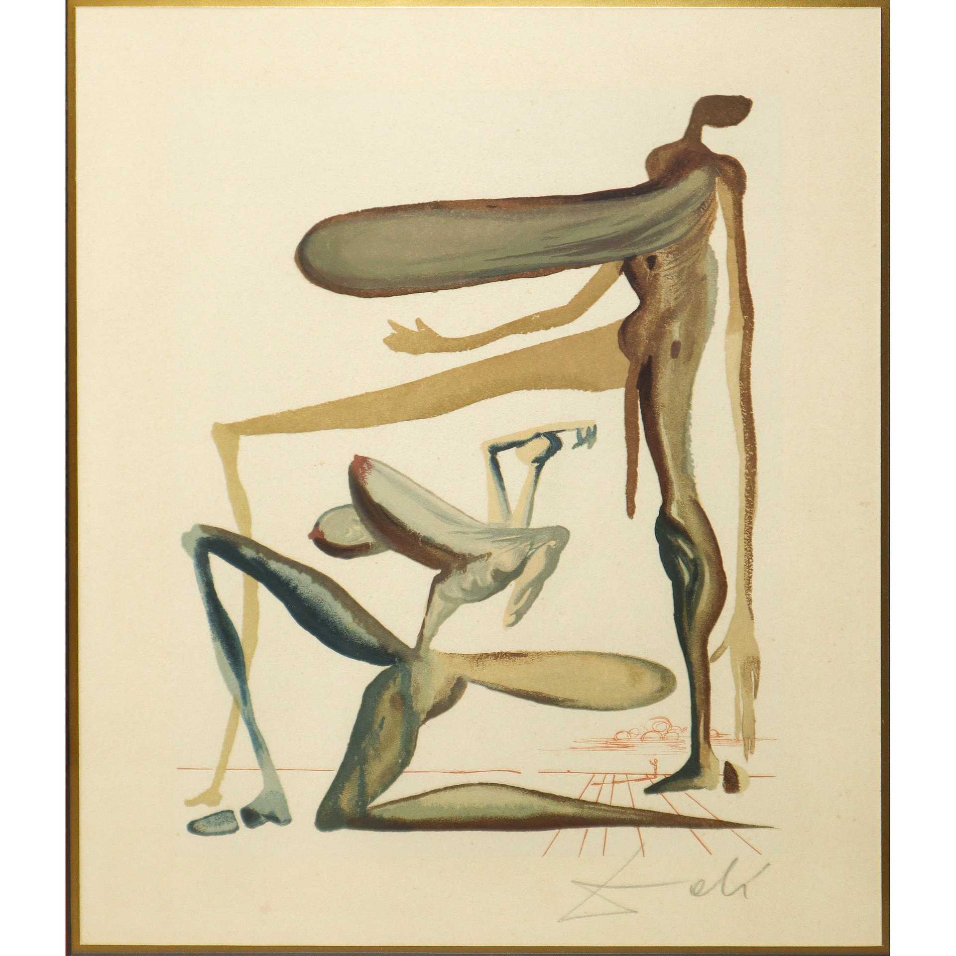 Salvador Dalì (Spanish 1904 - 1989) - La Divina Commedia: "Prodigalità" Tavola 22 Purgatorio h cm 31X24 in cornice h cm 62X55 litografia Firmata a matita in basso a destra