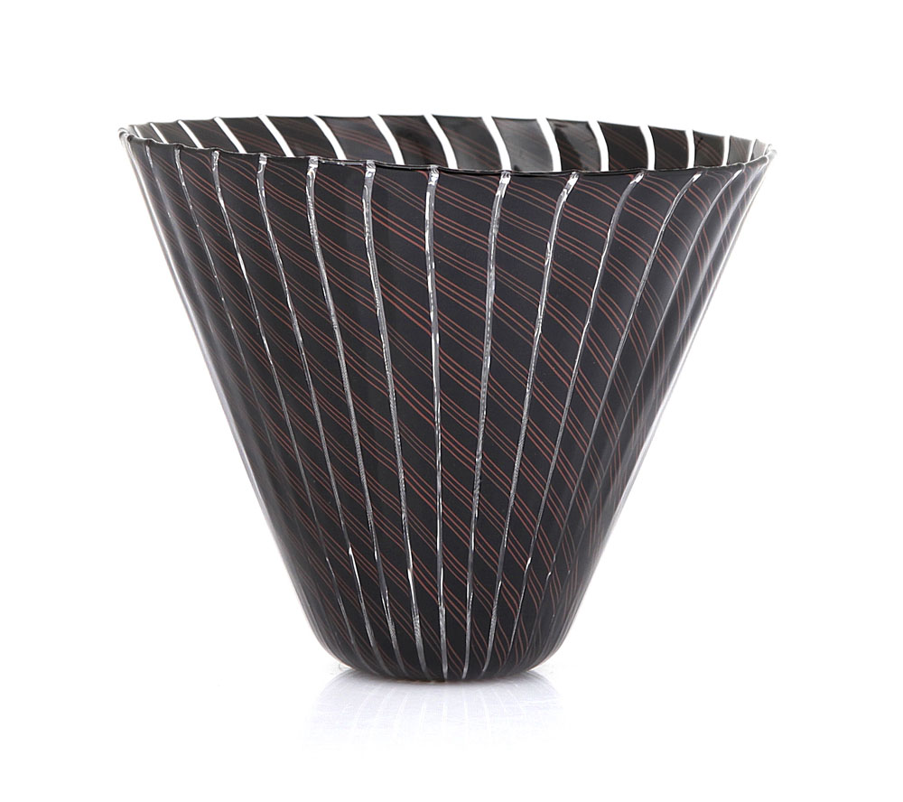 VEART VASO IN VETRO A CANNE, VEART, 1982, troncoconico, canne nero striate...