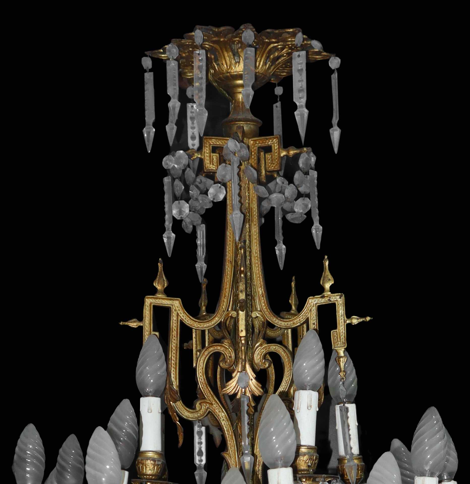 Lampadario da salone in ottone dorato e brindoli in vetro
