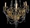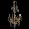 Lampadario a 6 luci con fusto in ottone dorato e vetro con brindoli e piattini in vetro