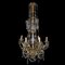Lampadario con fusto in ottone e vetro con brindoli e piattini in vetro