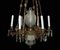 Sospensione elettrificata struttura in metallo dorato con brindoli di vetro e centrale in maiolica policroma a 6 luci, Art Nouveau period