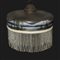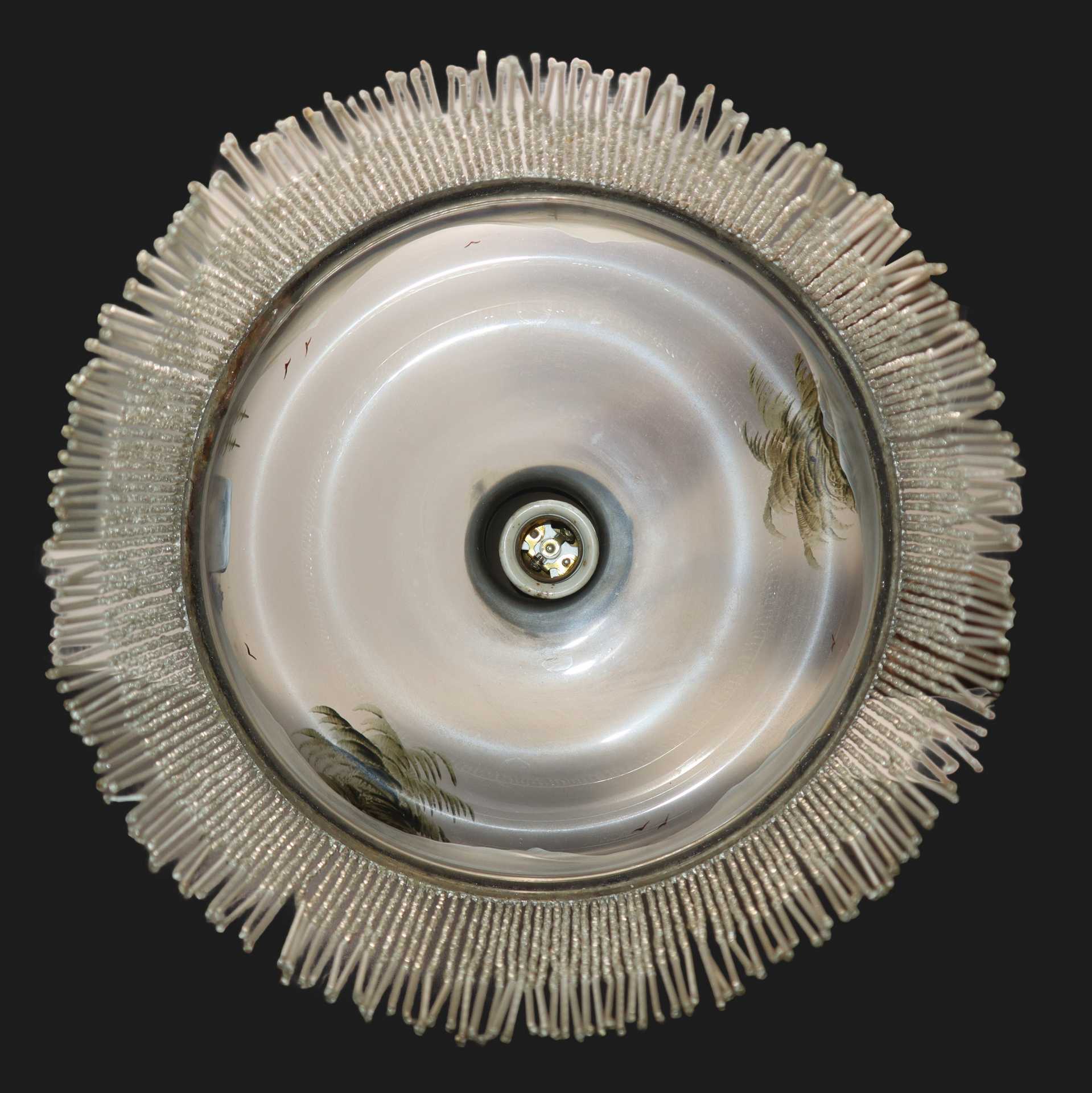 Lampadario Liberty in vetro dipinto con paesaggio con frangia di perline a giro