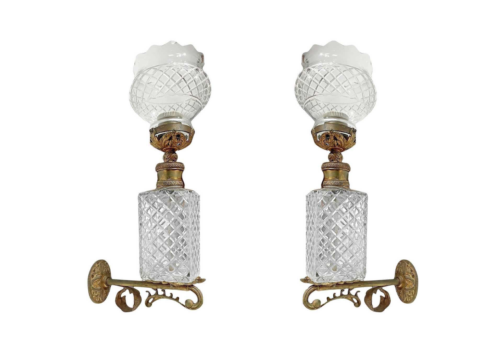 Coppia di appliques in bronzo e vetro, Early 20th century