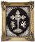PANNELLO CON CROCEFISSO E ANGELI IN ARGENTO, XIX SECOLO, fregi e placche sbalzate applicate su supporto in velluto, teca coeva; usure.