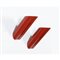 Coppia di lampade da parete ad una luce modello 'Megaron', struttura in metallo curvato e laccato rosso, diffusore con vetro rettangolare. Etichetta di produzione.