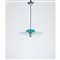 Lampada a sospensione ad una luce, con diffusore a disco circolare sagomato in vetro verde Nilo.