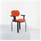 Una poltrona con struttura in metallo verniciato nero, abs, seduta e schienale con imbottitura e rivestimento in tessuto rosso. Segni d'uso.